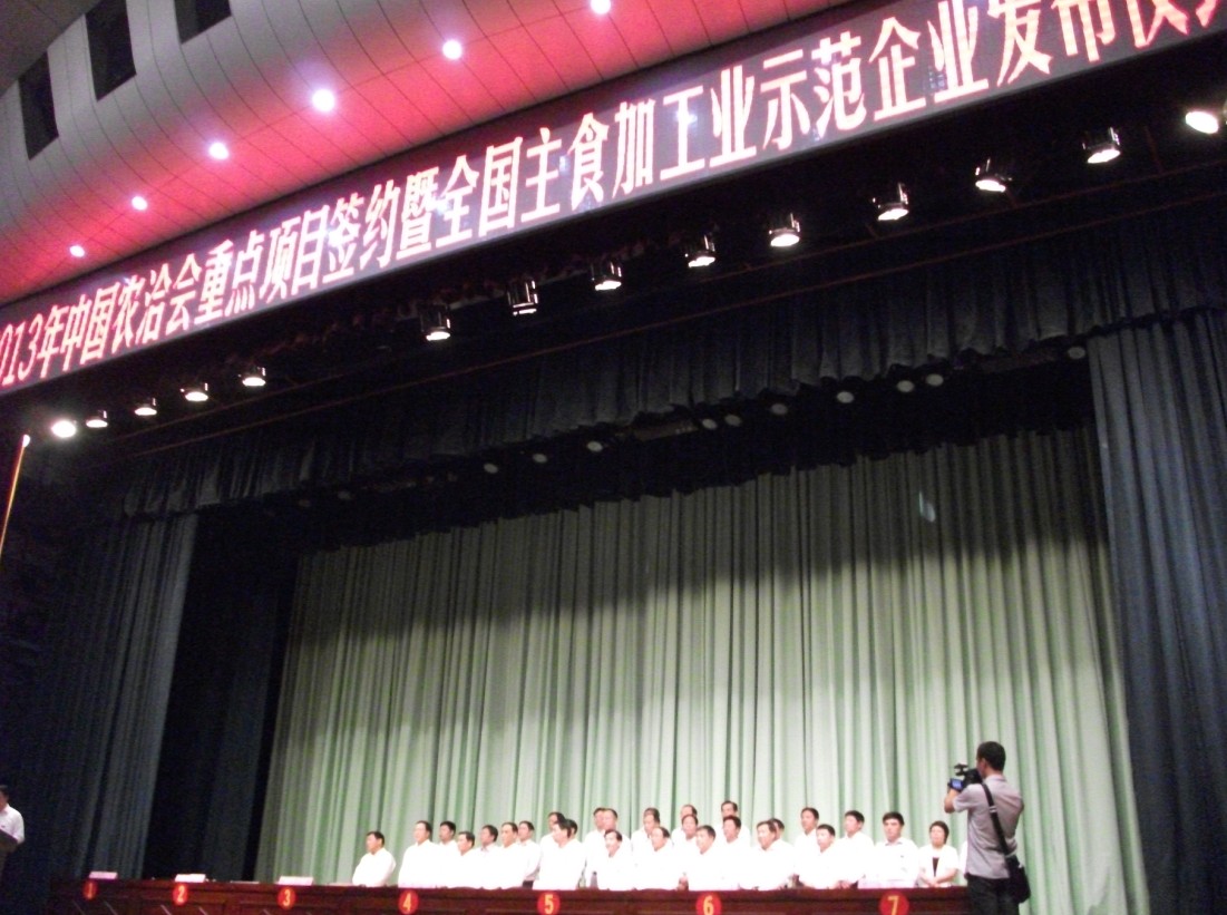 2013年中國農(nóng)洽會重點項目簽約暨全國主食加工業(yè)示范企業(yè)發(fā)布儀式現(xiàn)場