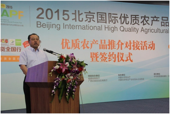 在優(yōu)質(zhì)農(nóng)產(chǎn)品推介對(duì)接活動(dòng)暨簽約儀式上,內(nèi)蒙古農(nóng)牧業(yè)產(chǎn)業(yè)化龍頭企業(yè)協(xié)會(huì)執(zhí)行會(huì)長(zhǎng)林永亮向與會(huì)人員介紹了內(nèi)蒙古獨(dú)特的地域文化及內(nèi)蒙古優(yōu)質(zhì)綠色農(nóng)畜產(chǎn)品,林會(huì)長(zhǎng)指出,得天獨(dú)厚的資源優(yōu)勢(shì)孕育了內(nèi)蒙古優(yōu)質(zhì)綠色無污染的農(nóng)畜產(chǎn)品,內(nèi)蒙古優(yōu)質(zhì)無污染的農(nóng)畜產(chǎn)品進(jìn)駐北京精品館,必將為北京市民帶來純正的來自內(nèi)蒙古大草原的美味。林會(huì)長(zhǎng)表示,本次會(huì)議的主要目的就是帶領(lǐng)內(nèi)蒙古優(yōu)秀農(nóng)牧業(yè)產(chǎn)業(yè)化龍頭企業(yè),形成聯(lián)合艦隊(duì),打組合拳,打造內(nèi)蒙古的品牌,讓北京市民深入的認(rèn)知和了解內(nèi)蒙古的產(chǎn)品。會(huì)上,林會(huì)長(zhǎng)還邀請(qǐng)與會(huì)人員參加包頭國(guó)際牛羊肉大會(huì)和內(nèi)蒙古第三屆綠博會(huì)。林會(huì)長(zhǎng)講話后,隨即就有沃爾瑪?shù)却笮蜕坛筒少徤膛c他聯(lián)系對(duì)接。