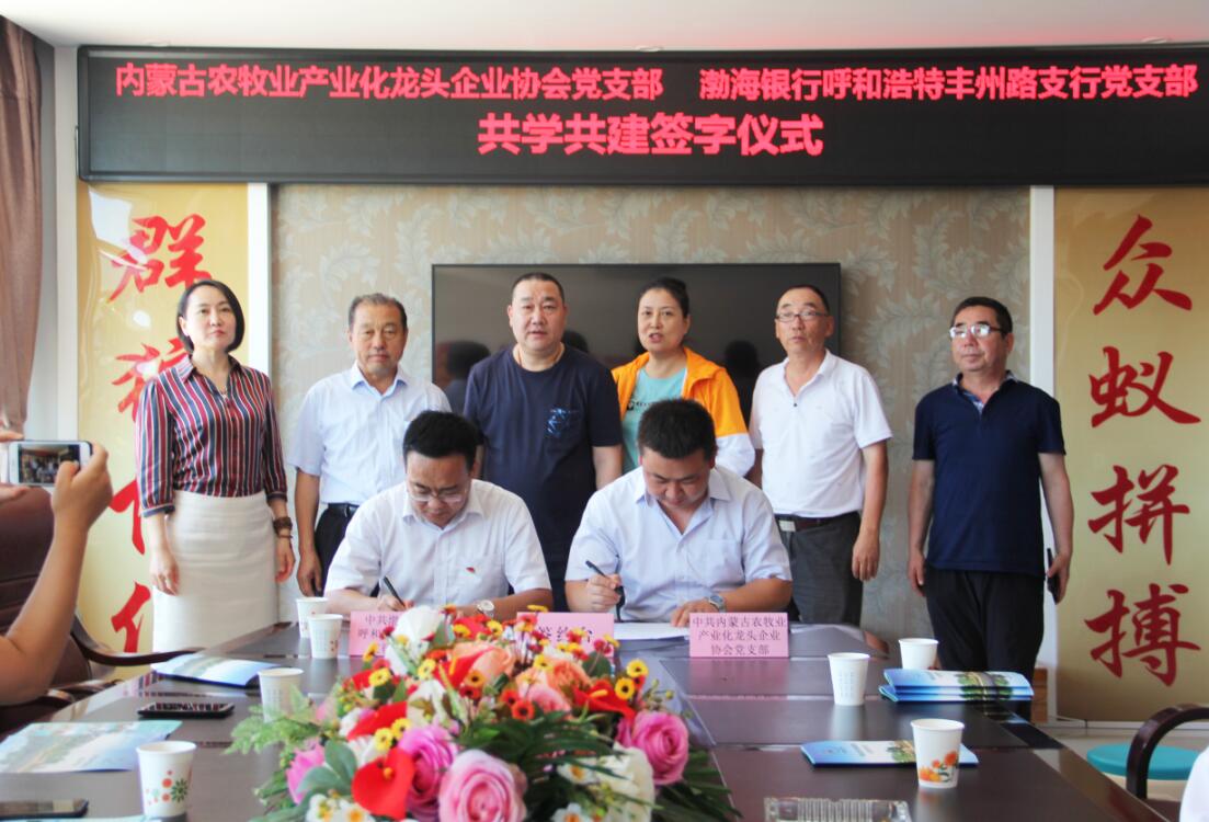 活動(dòng)過(guò)程中,為創(chuàng)造性地推進(jìn)黨組織“共學(xué)共建”結(jié)對(duì)工作,圍繞新時(shí)代黨的建設(shè)總要求,內(nèi)蒙古農(nóng)牧業(yè)產(chǎn)業(yè)化龍頭企業(yè)協(xié)會(huì)黨支部和渤海銀行呼和浩特豐州路支行黨支部簽訂了《共學(xué)共建結(jié)對(duì)協(xié)議》。通過(guò)結(jié)對(duì)共建,在弘揚(yáng)社會(huì)正能量、加強(qiáng)愛國(guó)主義教育等方面樹立新典型,力爭(zhēng)在構(gòu)建銀企合作關(guān)系等方面取得新突破。