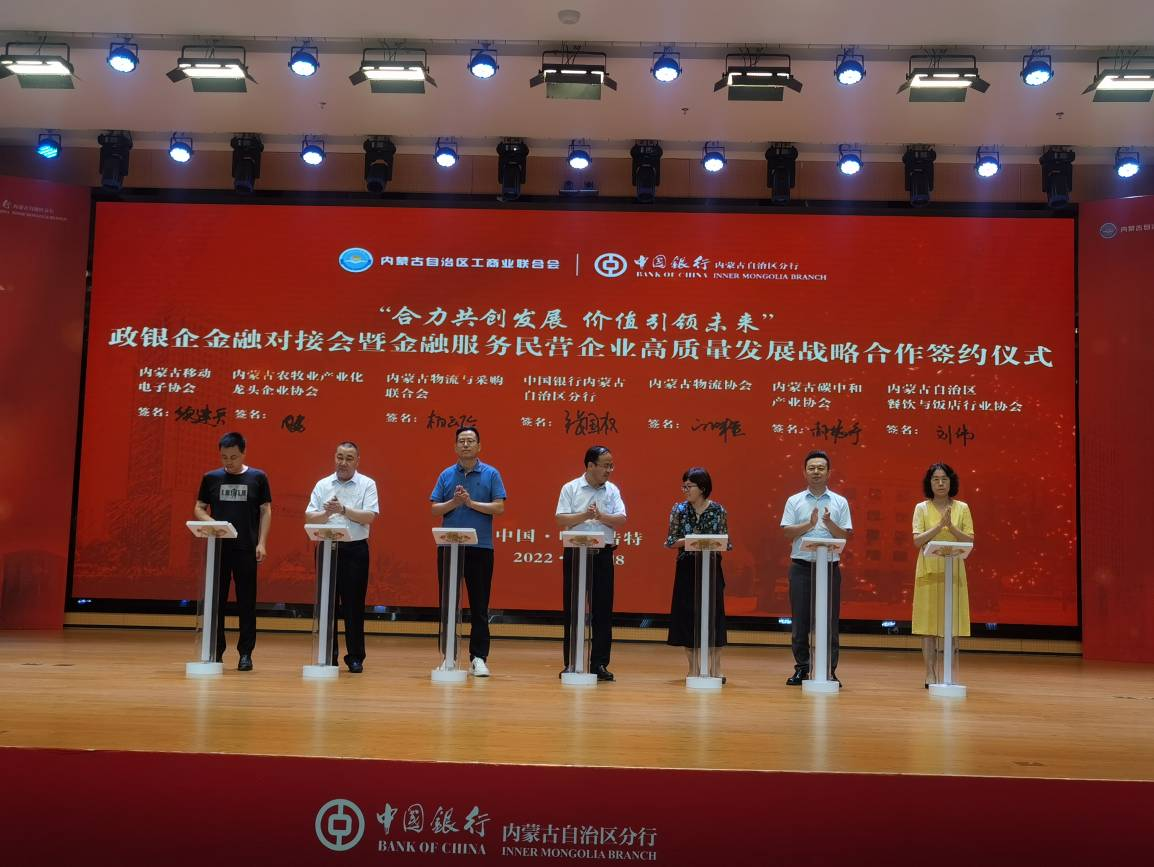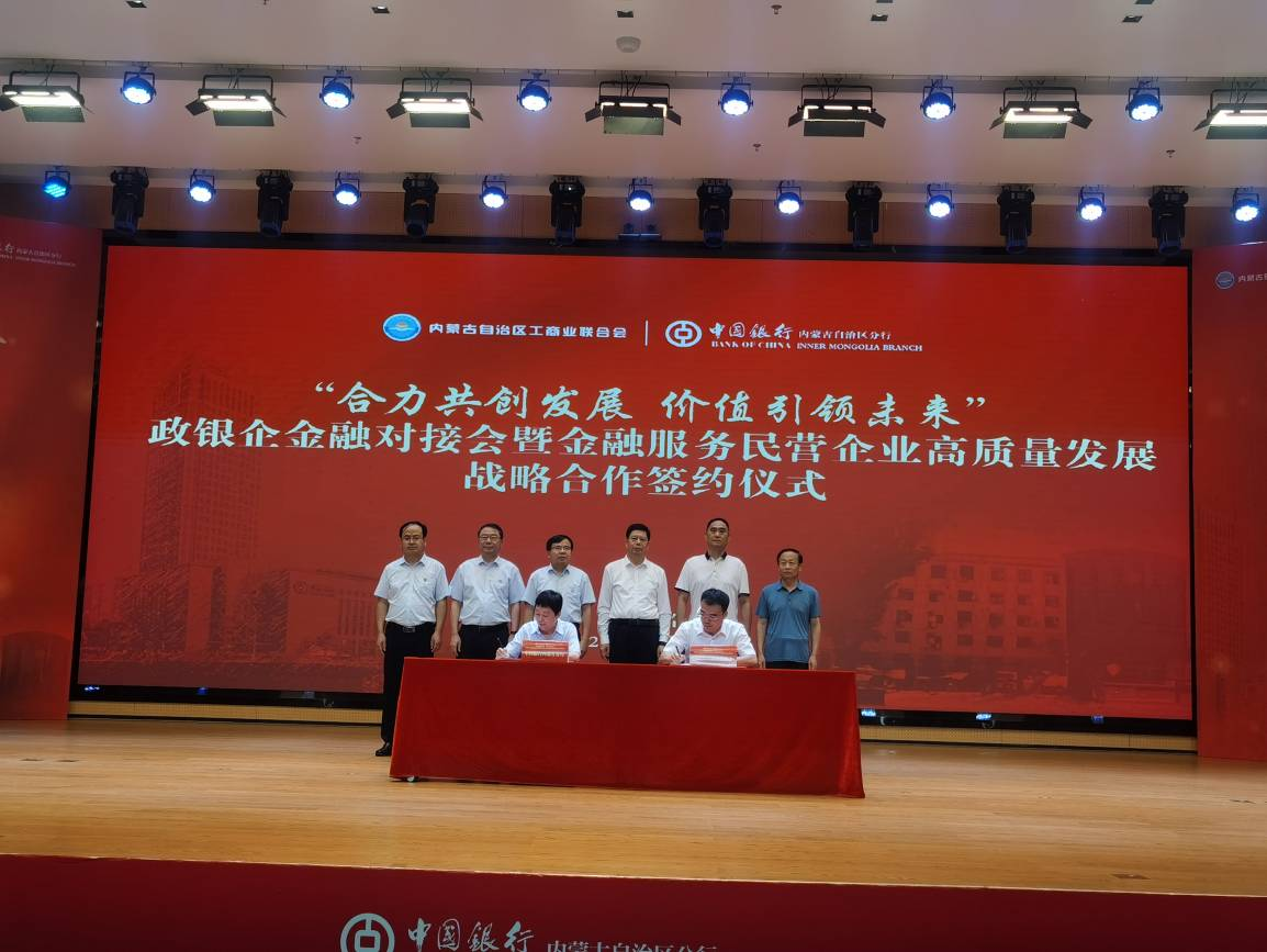 在與會人員的共同見證下,中國銀行內(nèi)蒙古自治區(qū)分行與自治區(qū)工商聯(lián)金融服務民營企業(yè)高質(zhì)量發(fā)展戰(zhàn)略合作正式啟航。