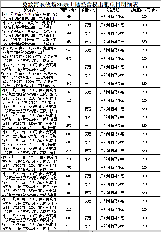 項目一:呼倫貝爾農(nóng)墾免渡河農(nóng)牧場有限公司26耕地經(jīng)營權(quán)出租項目