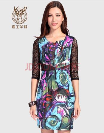 鹿王羊絨官方正品春夏手繪連衣裙職業(yè)正裝