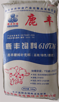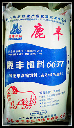 B、育肥羊濃縮飼料:執(zhí)行標準Q/BLFS02-2013,主要原料組成:豆粕、菜粕、棉粕、DDGS、石粉、磷酸氫鈣、食鹽、復合預混料等。產(chǎn)品成分保證值:粗蛋白≧35.0,粗纖維≦14.0,粗灰分≦20.0,鈣1.8-4.0,總磷≧0.8,鹽1.0-2.0,水分≦14.0、賴氨酸≧0.8。