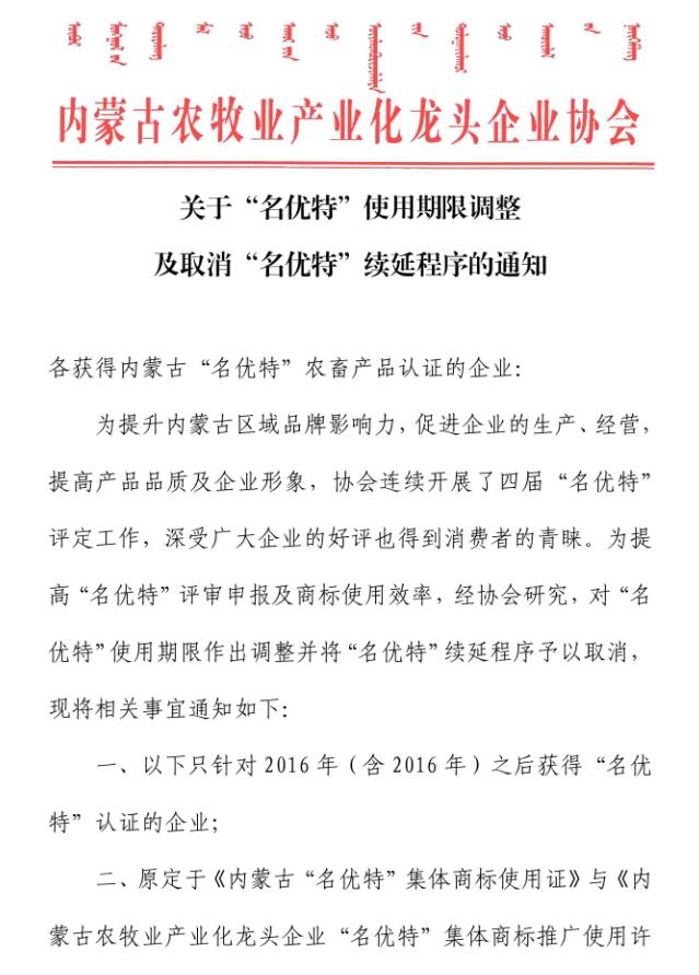 關(guān)于“名優(yōu)特”使用期限調(diào)整及取消“名優(yōu)特”續(xù)延程序的通知