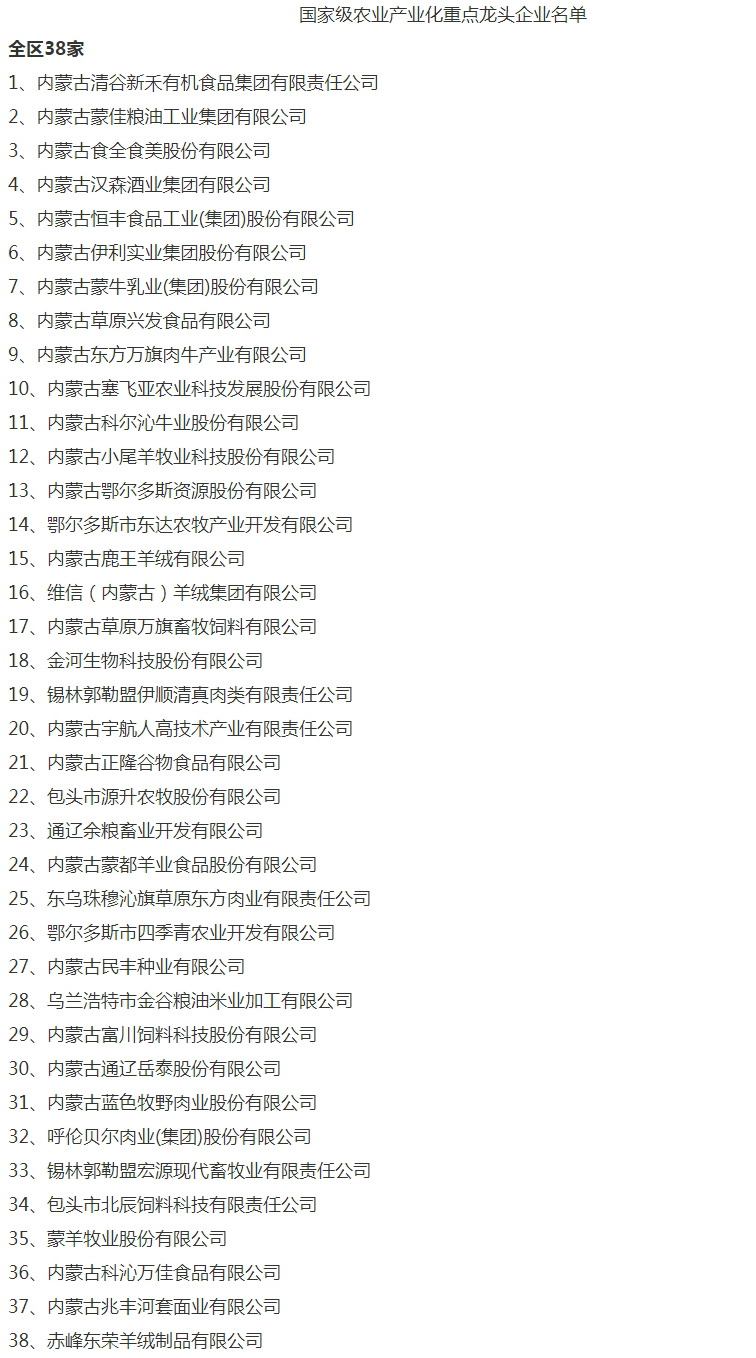 企業(yè)名稱:截止2017年末國(guó)家級(jí)農(nóng)業(yè)產(chǎn)業(yè)化重點(diǎn)龍頭企業(yè)名單
